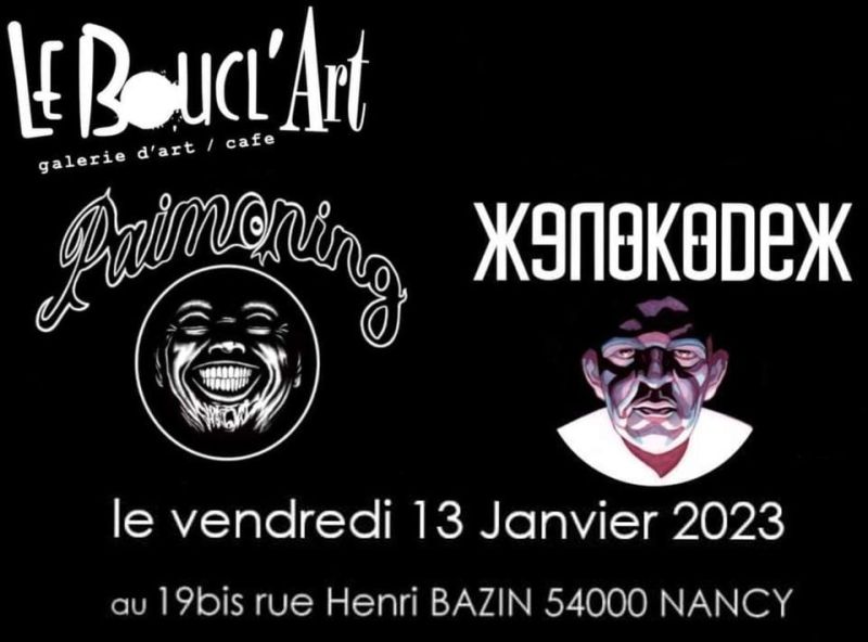 Venez découvrir au BOUCL'ART les univers parallèles et duals de PAIMONING et de XENOKODEX, qui exposeront pour la 1ère fois ensemble lors de la soirée du vendredi 13 janvier 2023.