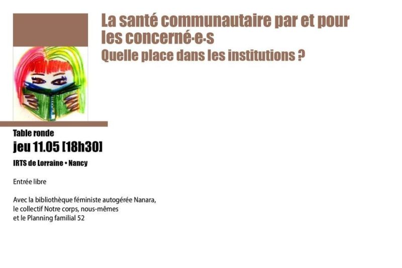 La participation des personnes dans les institutions est érigée comme préoccupation centrale dans l'accompagnement et la construction des dispositifs d'aide et d'action sociale. Nous viendrons questionner les places données aux personnes concernées à travers le concept de santé communautaire. Un regard pluriel sur les enjeux de cette manière d'aborder les soins, les corps, l'Autre. Se pose la question de la place donnée à la santé communautaire dans les espaces institutionnels. Quels possibles avec les concerné.e.s dans le vaste champ du travail social ?