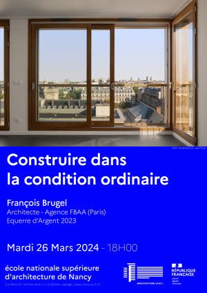 Conférence de l'école d'architecture de Nancy présentée par François Brugel, architecte et lauréat du prix de l'Équerre d'Argent 2023.
