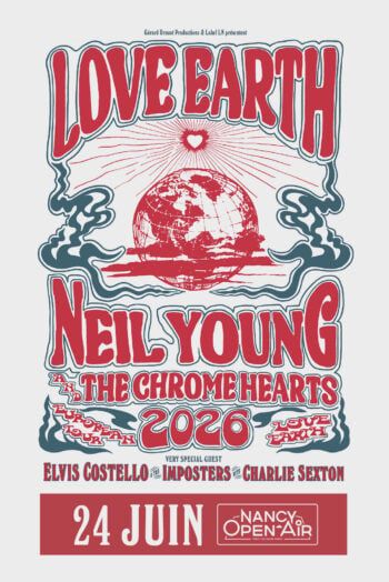 Neil Young sera le 22 juin 2026 au Festival de Nîmes et le 24 juin au Nancy Open Air, accompagné de Elvis Costello & The Imposters et Charlie Sexton en invités spéciaux. Prenez vos places !