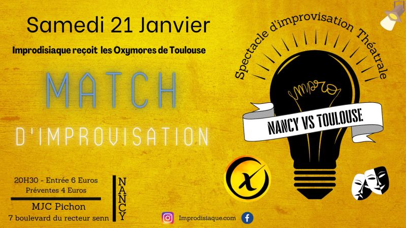 Improdisiaque reçoit Les oxymores de Toulouse pour un match d'improvisation spectaculaire.