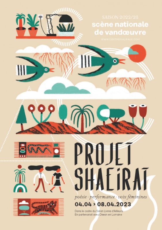 “Shaeirat” signifie “poétesses” en arabe. Ce cycle propose de faire découvrir des voix féminines de la poésie arabe contemporaine, à travers une série de performances et de spectacles (en français et en arabe) auxquels participent les poétesses elles-mêmes. Imaginé par Henri jules Julien, Projet Shaeirat fait entendre et voir une poésie qui déjoue une grande part de nos représentations, inscrite dans la lutte politique et sociale, comme dans la revendication d’identités singulières. Nous proposons trois parties de Shaeirat dans le cadre du Salon Livres d’Ailleurs édition Orient, porté par nos amis de Diwan en Lorraine.