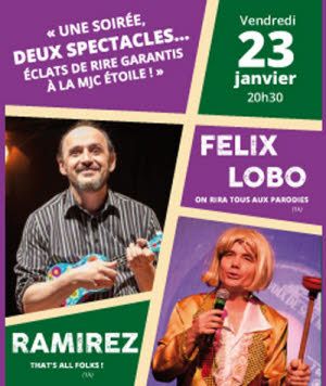 • That's all folks ! – Artiste aux multiples facettes, Ramirez enchaîne les personnages farfelus : humoriste cajun, chanteur de variété, poète moderne, serial killer décalé ou encore diva caritative. Un univers délirant, rythmé, plein d’ironie et d’autodérision, peuplé de figures excentriques et attachantes. • On rira tous aux parodies – Fort de 32 ans de carrière, Félix Lobo livre un solo explosif où la parodie règne. Une heure de “radio nostalgie” revisitée : Brel, Brassens, Cabrel, Polnareff, Bruel, Hugues Aufray, Téléphone, Indochine, Delpech, Duteil, Mitchell et d’autres passent à la moulinette, entre guitare approximative, ukulélé et bandes-sons déjantées.