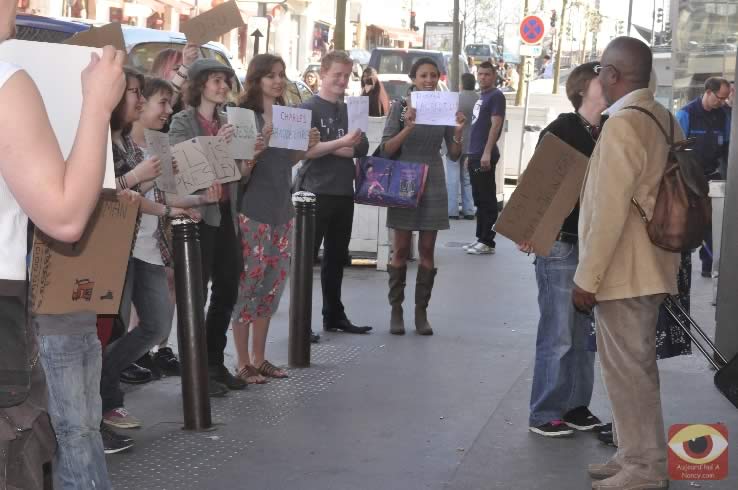 Pour étonner les passants, les membres du groupe ont simulé l'arrivée d'un aéroport, pancartes en main, attendant les voyageurs. Et du beau monde devait débarquer à Nancy : les membres de Nancy Flashmob ont attendu David LACHAPELLE, Angélina JOLIE, Georges CLOONEY ainsi que Charlie (qu'ils ont cherché quelques mois auparavant dans une mémorable flashmob "où est charlie ?"), Homer SIMPSON ou encore Marie !