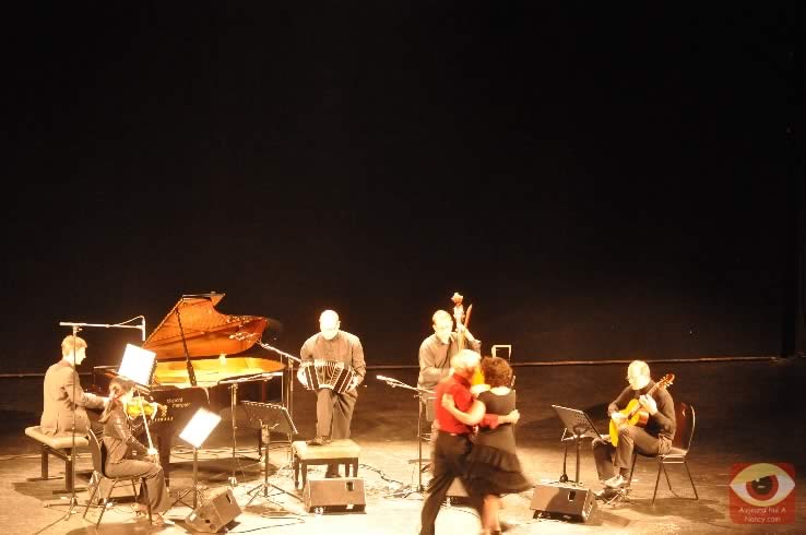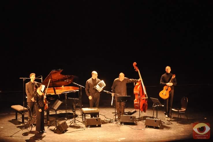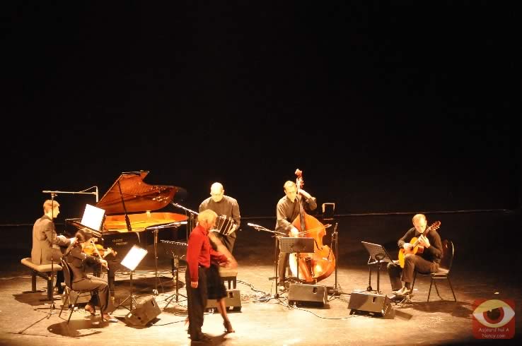 En première partie, le quintet composé du bandonéoniste Daniel GRUSELLE, de la violoniste Géraldine ROCHER, du pianiste Philippe KLEIN, du guitariste Marc JABY et du contrebassiste Denis ROCHER ont interprété des œuvres d'Astor PIAZZOLLA, lui rendant un hommage vibrant. L'interprétation de ces œuvres a permis au couple composé de Fanny PETITJEAN et Jean-Pierre CIFRA de Plaisir Tango, une association nancéenne visant à faire découvrir le Tango à Nancy, de danser le tango sur une partie de la scène. Cette participation chorégraphique a donné une belle valeur ajoutée au concert.