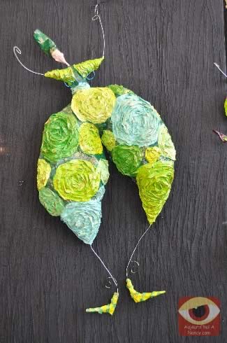 Une fois réalisée et séchée, le "papier de Claire" doit passer à l'étape de colorisation. C'est avec ses plus beaux piceaux qu'elle va mettre en couleur ses papiers. Après ultime séchage, la réalisation est enfin prête à orner une pièce en pendant l'objet par le crochet dédié à cet effet.